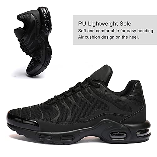 Scarpe da ginnastica da uomo, alla moda, con cuscinetto d'aria, casual, per camminare, tennis, palestra, sport atletici, Nero, 40 2/3 EU