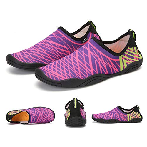 Materiale suola: Gomma, può essere piegata, Water Shoes hanno una spessa suola in gomma e una punta rinforzata, antiscivolo e resistente all'usura. Protegge i piedi dai ricci di mare, dai sassi appuntiti.