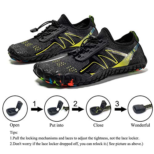 Materiale suola: Gomma, può essere piegata, Water Shoes hanno una spessa suola in gomma e una punta rinforzata, antiscivolo e resistente all'usura. Protegge i piedi dai ricci di mare, dai sassi appuntiti.