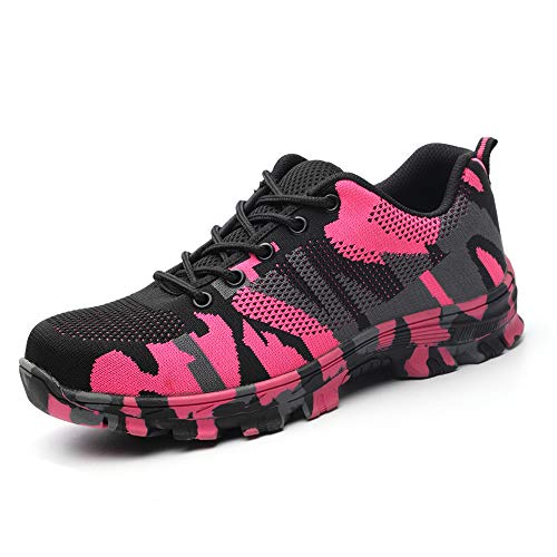 Scarpe Lavoro Donna Sneakers Antinfortunistiche Punta in Acciaio Uomo Trekking Escursionismo Stivali Piattaform Protezione Shoes Lacci Camuffare di Nero Blu Verde 38-46