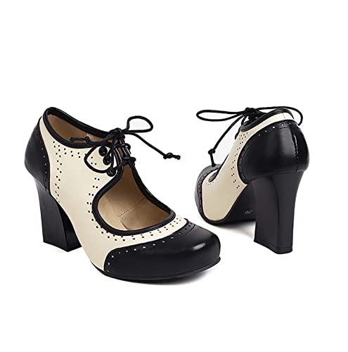 HRN Scarpe Lolita Vintage con Punta Tonda in Pelle da Donna, Décolleté Mary Jane Classiche con Cinturino con Fibbia Carina,Nero,40 EU