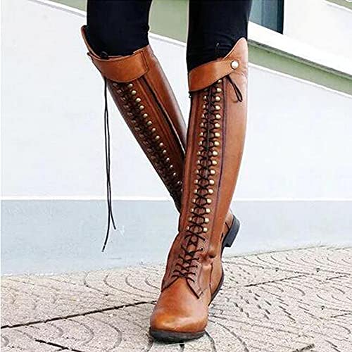 TZH Scarpe Medievali per Le Donne Stivali Gotici in Pelle PU Cosplay retrò con Albero Lungo Scarpe da Stivale Legate con Rivetti da Equitazione All'aperto,Nero,38
