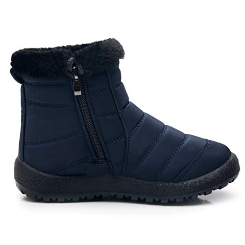 Scarpe Moda Stivaletti Scarponcini Biker Cavalier Donna Stivali da Neve più Stivali Corti Caldi Impermeabili di Velluto Spesso (35 EU,Blu)