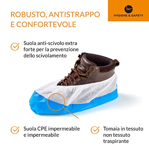 200 Copriscarpe/Copertura di Scarpe Monouso di ISC H&S con Suola Antisdrucciola, extra robusto, a tenuta di liquidi/impermeabile, taglia unica, prodotto professionale