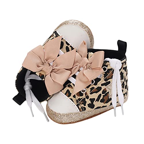 Scarpe Primi Passi Infantile Sneaker Bambino Stampa Leopardato Scarpine Neonato Antiscivolo con Pailettes (Marrone, 6-9 Mesi)