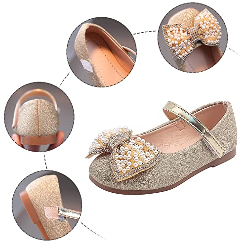Scarpe da principessa per bambini, scarpe da bambina, accessori per costume Mary Jane con perle e strass, scarpe da sposa con fiocco, gold, 23