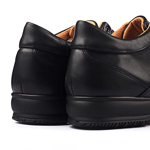 Scarpe con Rialzo da Uomo Che Aumentano l'Altezza Fino a 7 cm. Fabbricate in Pelle. Modello Alpino (39, Nero)