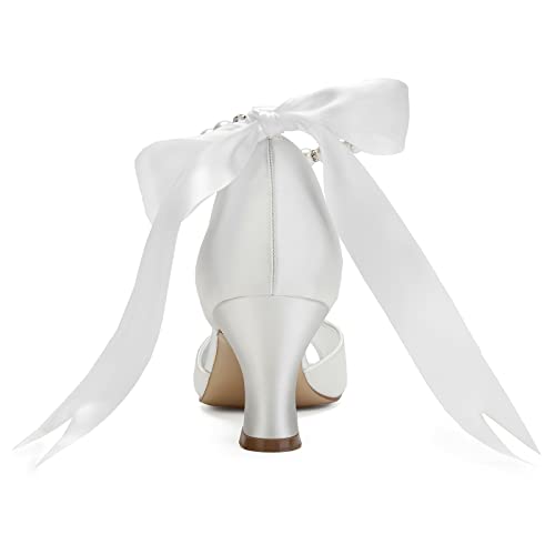 Scarpe da Sposa da Donna Punta Aperta 6.5cm Tacco Basso Avorio Scarpe da Sposa con Fiocco in Nastro di Perle,Blu,36 EU