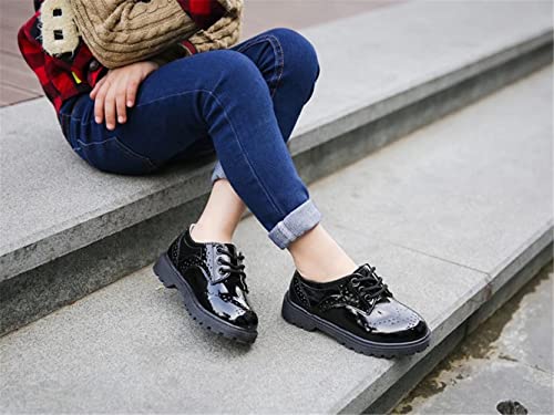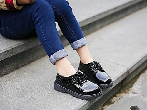 Scarpe Stringate Basse per Bambini e Ragazzi Oxford Brogue Vernice Scarpe Eleganti Bambina Impermeabili Leggere Festa Uniforme Formali Nero 24