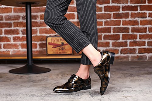 Scarpe da lavoro Abito da uomo, Scarpe a punta Stringate in pelle verniciata Derby Oxford Matrimonio Ufficio alla moda Floreale Vintage Casual - Oro -8 UK