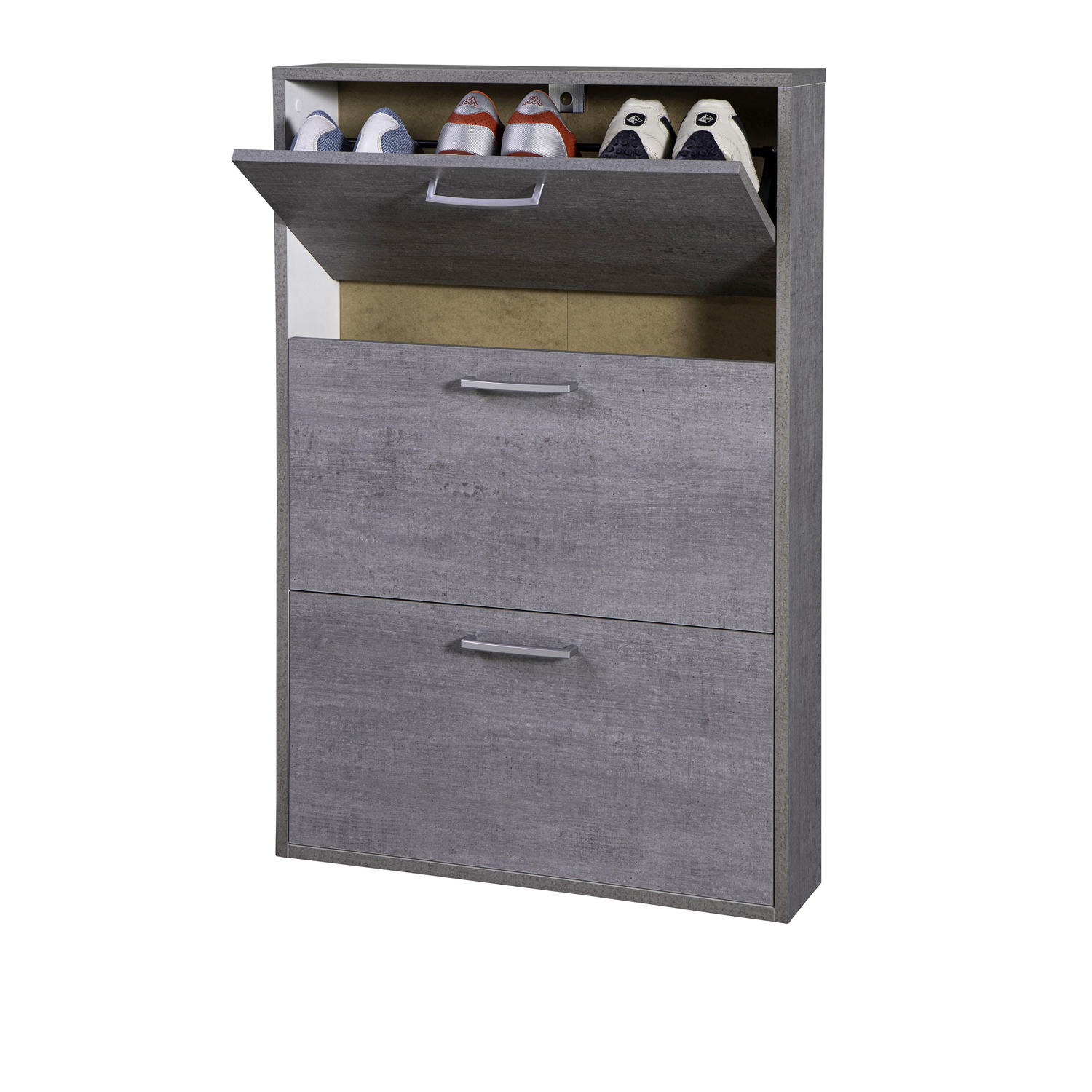 Tieni in ordine le tue scarpe con la scarpiera in legno Made in Italy. Grazie al suo design slim, semplice e moderno, puoi inserirla con facilità all'ingresso di casa, in salotto, in corridoio o anche in camera da letto. Dispone di 3 scomparti con apertura a ribalta per riporre comodamente fino a 9 paia di scarpe. Le maniglie permettono una facile apertura per estrarre e riposizionare le calzature in un solo gesto e scegliere con facilità cosa indossare ogni giorno. Misure: 65x15x100 cm. Da montare, con kit istruzioni.