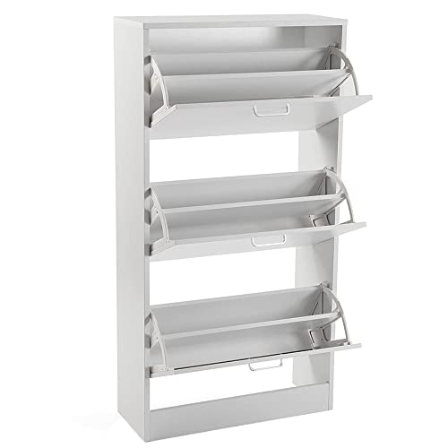 Cosedacasa vi propone questa bellissima scarpiera bianca slim con 3 ante a ribalta e ogni anta ha di scomparti dove riporre le scarpe