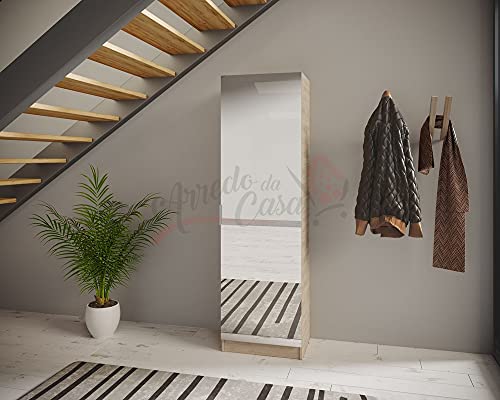 Scarpiera Salvaspazio con 4 Ripiani 3 Ganci Appendiabiti Armadio 1 Anta con Specchio Scarpiera Alta Scarpiera da Ingresso Rovere ASI4039