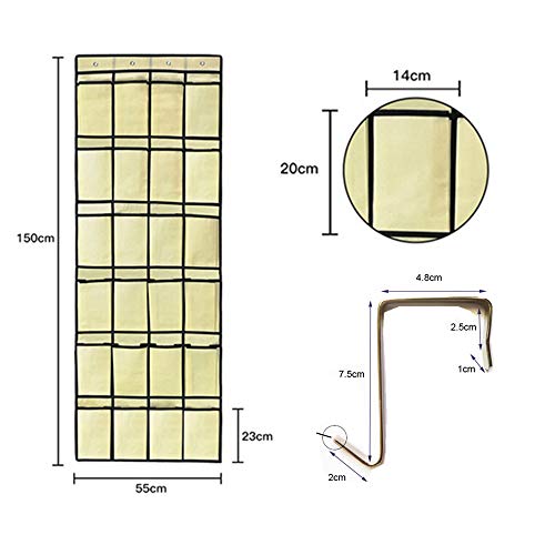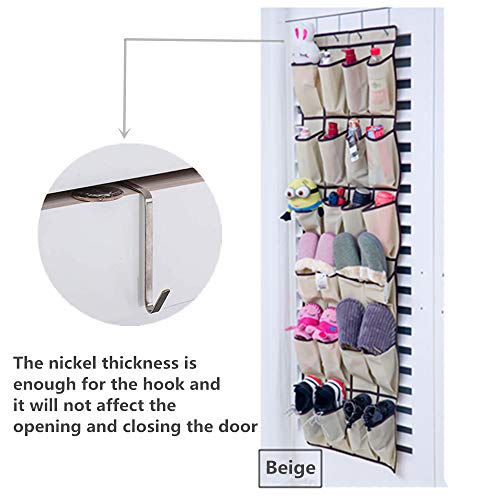 Scarpiera da Sopra la Porta 24 Tasche Portaoggetti Armadio Scarpe Salvaspazio Organizer Scarpe con 4 Ganci per Scarpe Giocattoli e Accessori Beige