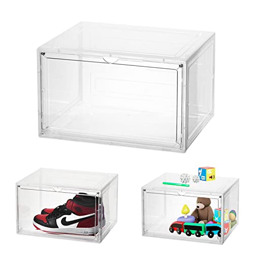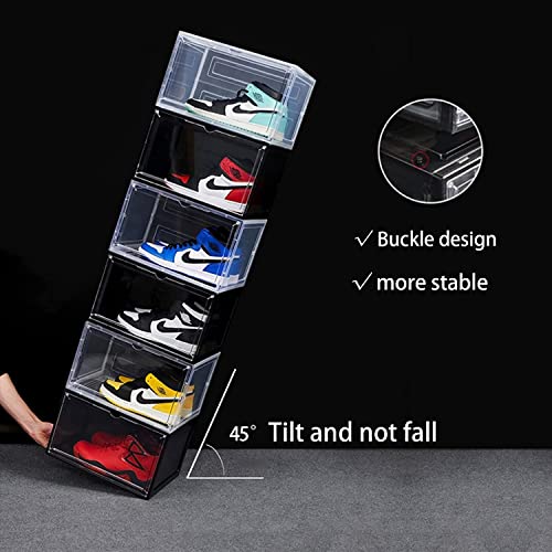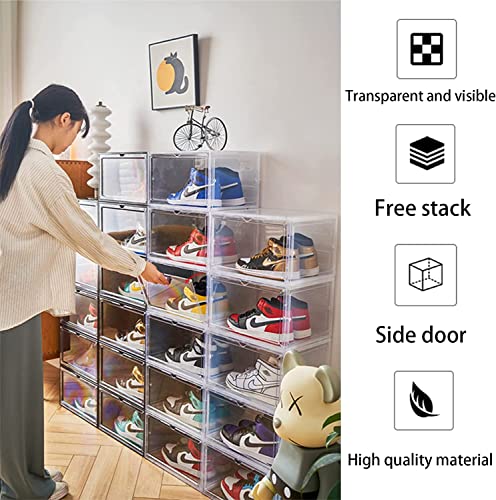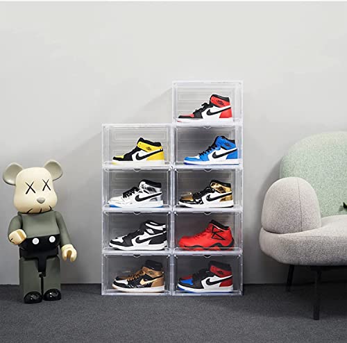 Design trasparente: le nostre scatole per scarpe sono completamente trasparenti sulle porte e sui lati, per cui è facile vedere e trovare le scarpe. Le nostre scatole per scarpe sono progettate con aperture magnetiche che ne facilitano la rimozione e l'inserimento.
