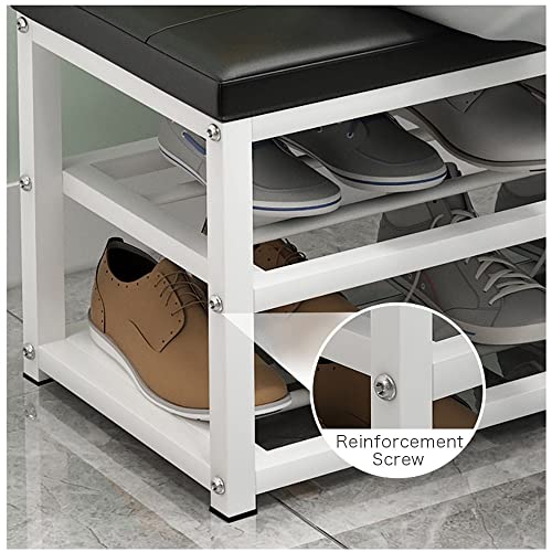 Scarpieras Ingresso con Seduta Portascarpe Salvaspazio Struttura in Metallo, Cassapanca Dimensioni 90x45x30cm, Panca Scarpiera per Soggiorno Camera da Letto Corridoio (Bianco)