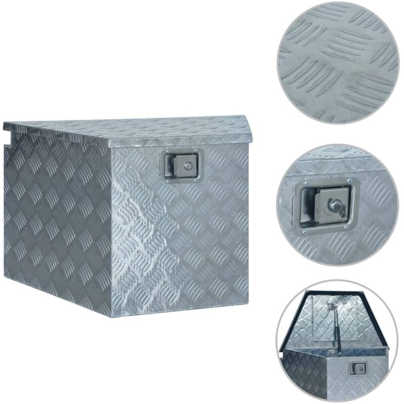Grazie al suo design leggero e compatto, la nostra cassa in alluminio multiuso è la scelta ideale per l'imballaggio, lo stoccaggio e il trasporto. Può essere riposta all'interno di un veicolo, di un garage oppure può essere utilizzata in campeggio. Realizzata in lamiera di alluminio ondulato di alta qualità la cassa è resistente alla ruggine e solida. La cassa ha un interno spazioso dove riporre utensili, accessori o attrezzature ed è dotata di un sistema di chiusura per una maggiore sicurezza (1 chiave inclusa). Colore: Argento Materiale: Alluminio Dimensioni: 737/381 x 410 x 460 mm (L x P x A) Triangolo Peso: 6,35 kg Con sistema di chiusura (1 chiave inclusa) È resistente alla ruggine e facile da pulire SKU: 144844