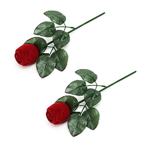 Scatola per Anelli Pratica e Resistente Scatola per Anelli di Proposta Scatola per Anelli di Fiori di Rosa Scatola per Anelli di Flanella per Fidanzamenti, Matrimoni e Anniversari 2 Pezzi (Rosso)