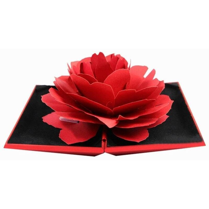 Rendi la tua proposta ancora più magica e romantica con questa bellissima scatola per anelli. Quando apri la scatola, si apre una rosa di carta rossa. Nel mezzo della rosa c'è un posto dove puoi attaccare un anello. L'interno della scatola è ricoperto di morbido velluto. L'esterno della scatola è discretamente progettato per non rivelare il contenuto ed è quindi ideale per l'anello di fidanzamento. - Scatola per anelli con rosa di carta rossa in 3D - Rendi la tua proposta ancora più magica - L'esterno della scatola è discretamente progettato Specifiche: Colore rosso Materiale: plastica, carta Dimensioni: 12 x 7 x 2 cm Il pacchetto contiene: 1x scatola per anelli Il prodotto viene consegnato nella confezione originale