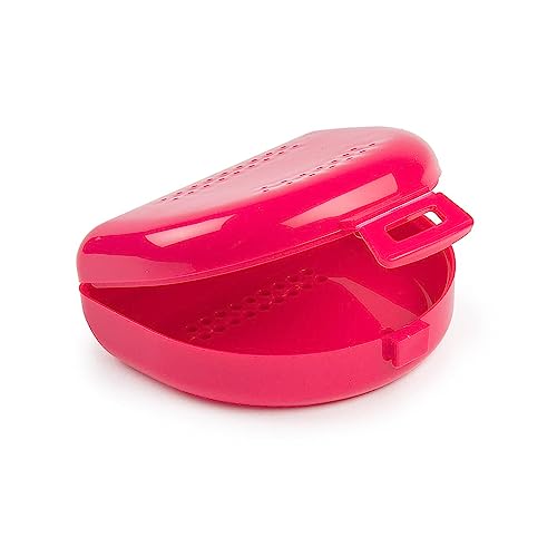 Scatola per Apparecchio Denti, Bite e Dentiere - Custodia Traspirante con Fori di Sfiato - Portatile, Resistente e Facile da Pulire - 75x60x25mm - Porta Bite Dentale in Plastica - Magenta