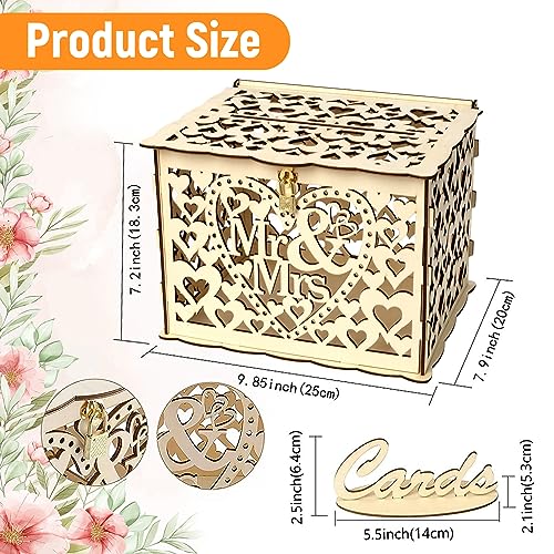 Scatola di Carta di Nozze in Legno, Scatola in Legno per Buste Fai da Te, Scatola per Partecipazioni di Nozze in Legno Vintage, Design Romantico, Adatto per Matrimoni, Anniversari