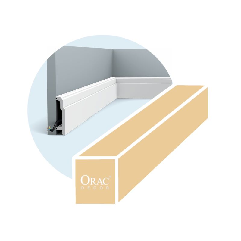 Il design lineare di questo battiscopa è semplice e senza tempo. Può essere facilmente adattato a quasi tutti gli interni. Inoltre, è disponibile in una versione flessibile, che consente di adattarlo, ad esempio, alle pareti curve. Con questo battiscopa si può dare libero sfogo alla fantasia! Per completare l'aspetto, completate il tutto con la cornice C213 della famiglia CANTERBURY e con il binario per quadri P8020, dalla curva morbida. Non esitate a calcolare le quantità di colla necessarie (FDP500 o FDP700) con il calcolatore di colla online facile da usare. Potete anche rivolgervi al nostro ufficio di progettazione se ne sentite la necessità.