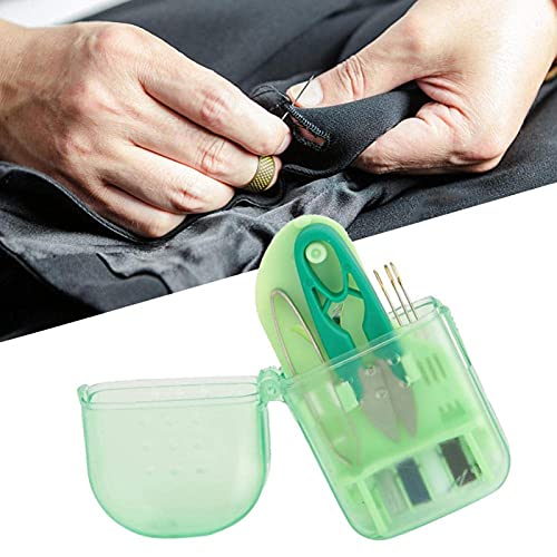 Scatola da cucito, kit da cucito, cassetta degli attrezzi da cucito in plastica colorata mini macaron per principianti e vestiti di emergenza con scatola di immagazzinaggio(verde)