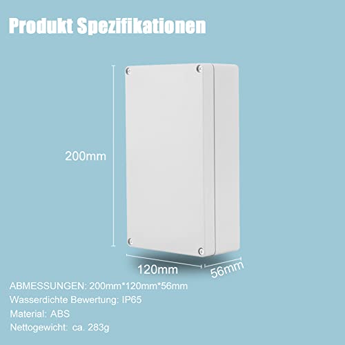 Scatola Derivazione Esterna, Akozon Cassetta Di Derivazione Bianca IP65 Impermeabile 200 x 120 x 55mm Scatola Elettronica Per Uso Esterno ABS Scatola a Tenuta Stagna Per Apparecchiature Elettriche