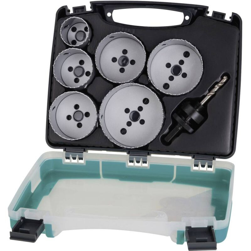 Dettagli tecnici Idoneità del materiale Metallo, Metalli non ferrosi, Plastica Materiale punte HSS bi metallica Tipo prodotto Kit seghe a tazza Caratteristiche Per legno, compensato, acciaio, metalli non ferrosi, plastiche, pannelli di cartongesso Materiale: BiM in valigetta in plastica. Testo tradotto automaticamente. Incluso nella consegna 6 punte per seghe a corona ø 40, 54, 65, 68, 74, 86 mm Mandrino con punta a centrare Punta di ricambio per mandrino. Requisiti di sistema null