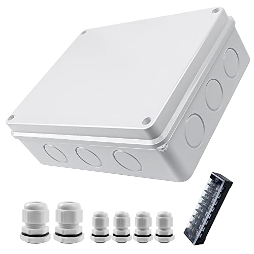 Scatola Elettrica da Esterno - LNSYSNS 255 × 200 × 80mm Quadro Elettrico - con Morsettiera, 3 su 3 fuori, Connettore cavo PG13.5, PG9 e Guarnizione, per Cablaggio Interno ed Esterno (IP65)
