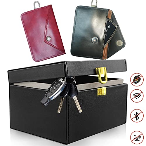 Scatola di Faraday per Chiavi Macchina e Nero & Rosso Faraday Schermatura del Segnale Chiave Marsupio Chiave Dell'auto Faraday Caso per Prevenzione Furto D'auto(1 Serratura Singola + 2 Sacchetto)