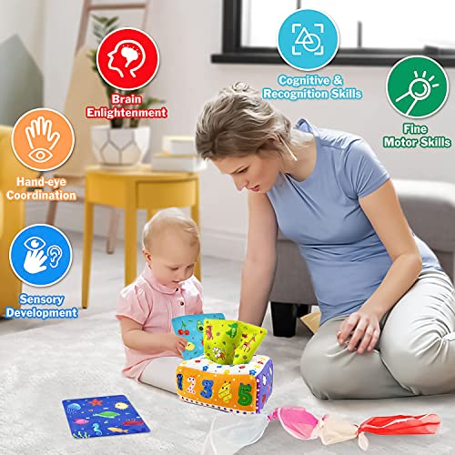 Scatola di Fazzoletti per Neonati, Giocattolo Della Scatola Del Tessuto Per Neonati, Scatola Interattiva in Tessuto, Giocattoli Sensoriali per Bambini, Giochi Montessori 6 7 8 Mesi