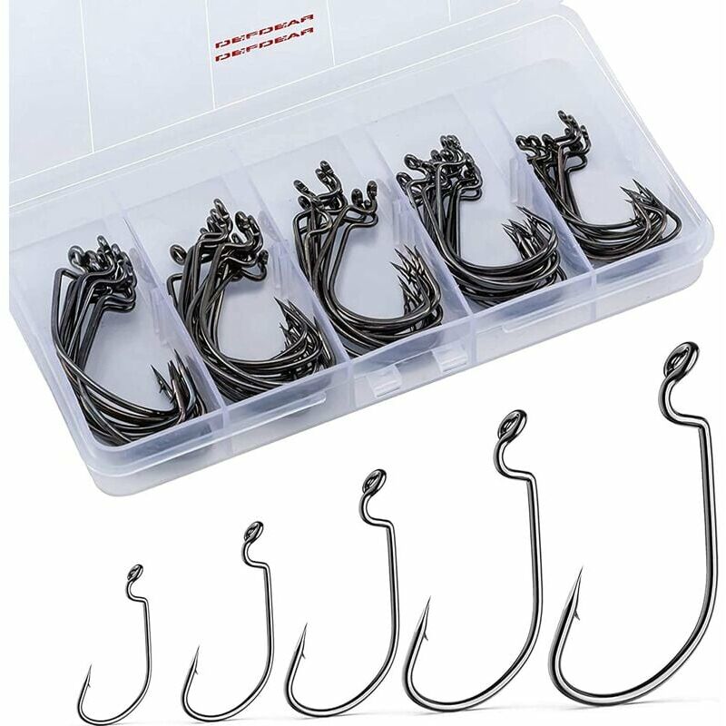 Le nostre scatole di ganci texani sono composte da 10 ganci di 5 diverse dimensioni. Per avere sempre la misura dell'amo adatta al pesce che morde il giorno. I ganci sono conservati in base alle dimensioni in una scatola di plastica con scomparti separati e numerati, quindi non devi preoccuparti di cercare di trovare la misura che ti serve. I ganci in acciaio inossidabile di qualità sono la chiave della tua attrezzatura. per non perdere nessun pesce durante l'amo. È stato progettato dai pescatori per i pescatori. Facile e veloce da installare sulla tua lenza, grazie al suo anello nella parte superiore del gancio, devi solo fare un nodo e mettere la tua lenza in acqua. Un design resistente, specifico per pescatori esigenti. I nostri ami texani sono progettati per la pesca con esche morbide, come lucci, persici, spigole, trote, black bass e altri predatori. Sarà perfetto per la pesca con soft top in laghi, fiumi e mari.Gli ami Texas ti consentono di pescare con un'esca in erba, alghe e
