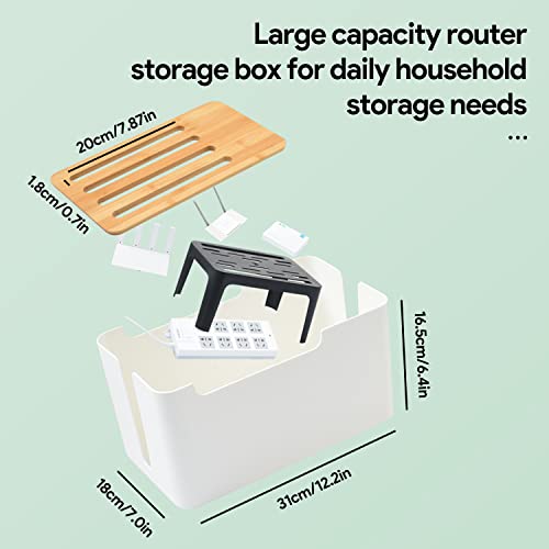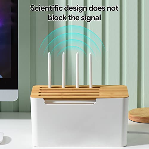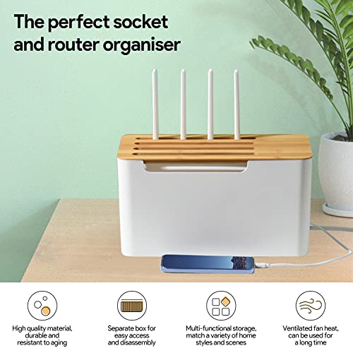 Scatola di Gestione dei Cavi,Scatola Portacavi,Organizer per Scatola di Gestione dei Cavi, Scatola Organizer a Corda con Coperchio in Legno,per Cavi TV, Computer, Router, Hub USB