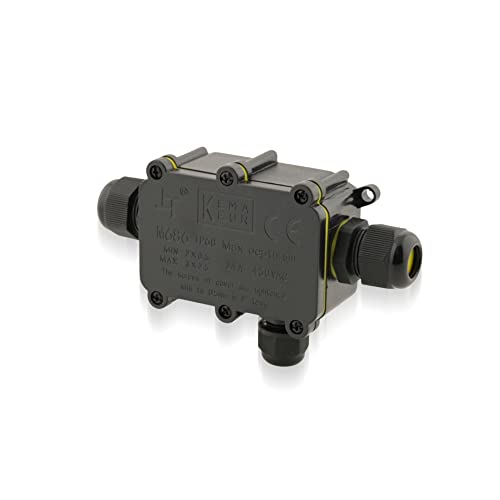 Scatola di giunzione impermeabile | IP68 | 24A 450V AC | 3 aperture | sezioni cavo: M20 5-9mm + M12 4-8mm | 4m profondità d'acqua VDE & CE connettore testato Giunzione elettrica esterna impermeabile