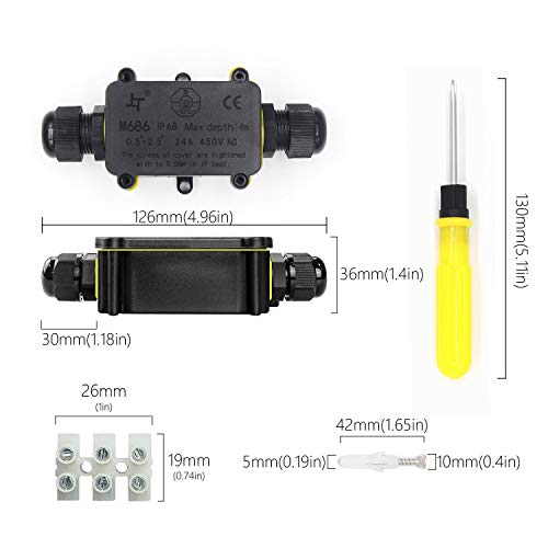 Qualità eccellente: questa scatola di giunzione è realizzata in ABS di alta qualità e plastica PVC, materiale eccellente che rende la scatola di giunzione durevole, forte e buona isolabilità, assicura l'utilizzo elettrico sicuro in ambienti esterni. Collegamento professionale per cavi esterni, come proteggere l'illuminazione del giardino o il collegamento elettrico.