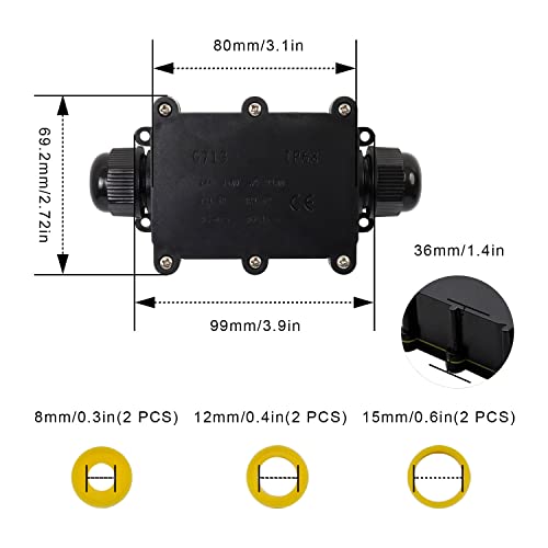 Alta Compatibilità: I scatola di giunzione elettrica sono ideali per riparare e prolungare i cavi di alimentazione. Diametri dei cavi disponibili: 4-9 mm, 9-12 mm, 9-15 mm;