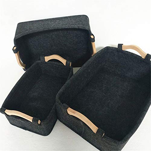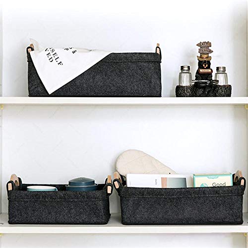 Scatola di Immagazzinaggio in Feltro con Manici in Legno, Cestino Pieghevole Organizzatore per Camera da Letto per Lavare I Cosmetici per Il Bucato (L)