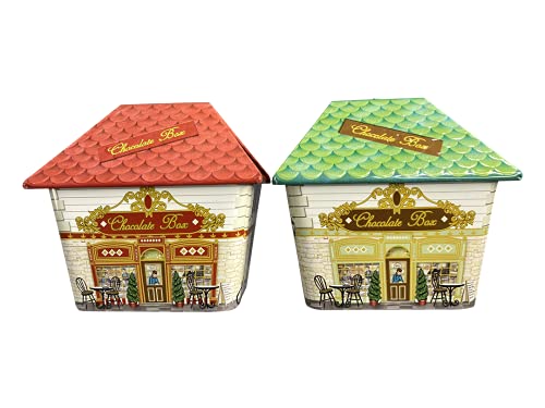 Scatola di Latta, Set di 2, a forma di una piccola casa, Chocolate Box, rosso e verde, circa 11 x 8.5 x 9.5 cm, volume: 200 ml
