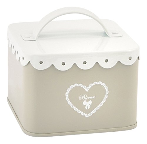 Scatola lattain latta, tortora e bianco, 11 x h17 cm