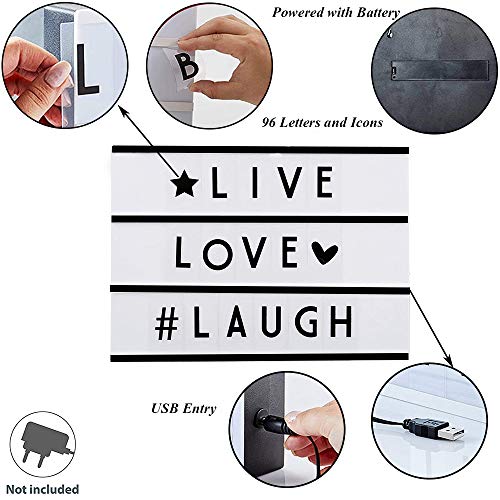 Scatola Luminosa LED A4, Scatole Luminose con Lettere, Cinema Scatola Luminosa, Vintage Porta USB Scatola Luminosa A4 con 96 Lettere, Numeri, Emoji per Compleanni, Matrimoni, Decorazioni Natalizie