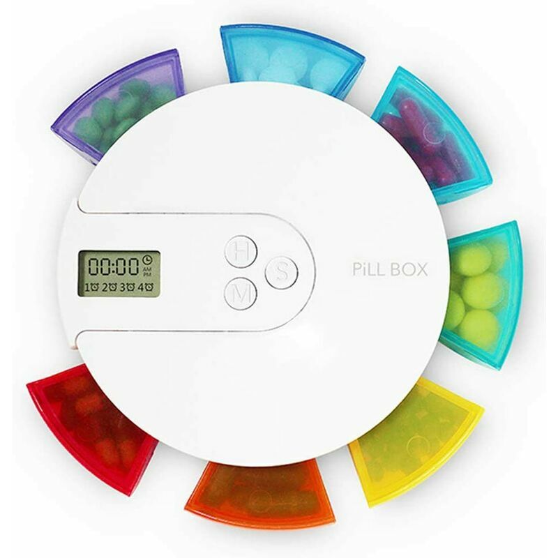 Promemoria sveglia: puoi impostare fino a 4 sveglie al giorno, che possono essere impostate in base alle esigenze individuali per ricordare alle persone smemorate di assumere i farmaci in tempo, aggiungere tranquillità, spirito e garantire protezione della salute Colori dell'arcobaleno - Il portapillole contiene 7 piccole scatole di medicinali color arcobaleno, design adesivo fai-da-te, scrivi quello che ti piace, usa promemoria personalizzati per essere sempre felice Efficace e facile - Adatto alle persone chi non lo fa Se non prendi molti farmaci ogni giorno, metti la quantità giusta per ogni giorno della settimana in 7 scatolette. Gestisci e organizza le pillole in modo efficiente e semplice con l'organizer settimanale per pillole Sicuro e salutare: doppia tenuta stagna, a prova di umidità, facile da smontare e pulire, offre uno spazio pulito e confortevole per farmaci, materiali sani, materie prime PP per uso alimentare, non contiene bisfenolo A, innocuo per il corpo umano sicuro