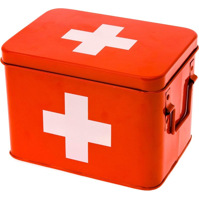 Aspect: Coloris: Rouge Matériau principal: Métal Dimensions: Hauteur (en cm): 16 Longueur (en cm): 21,50 Profondeur (en cm): 15,50 Autres caractéristiques: Informations complémentaires: Compartiments Plateau amovible Poids (en kg): 0,76 Boîte à pharmacie en métal Cross