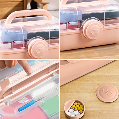 Scatola per medicinali Scatola di pronto soccorso trasparente, Pilipane Organizzatore di contenitori per medicinali di grande capacità con custodia per kit organizer per pillole Armadietto(Rosa M),