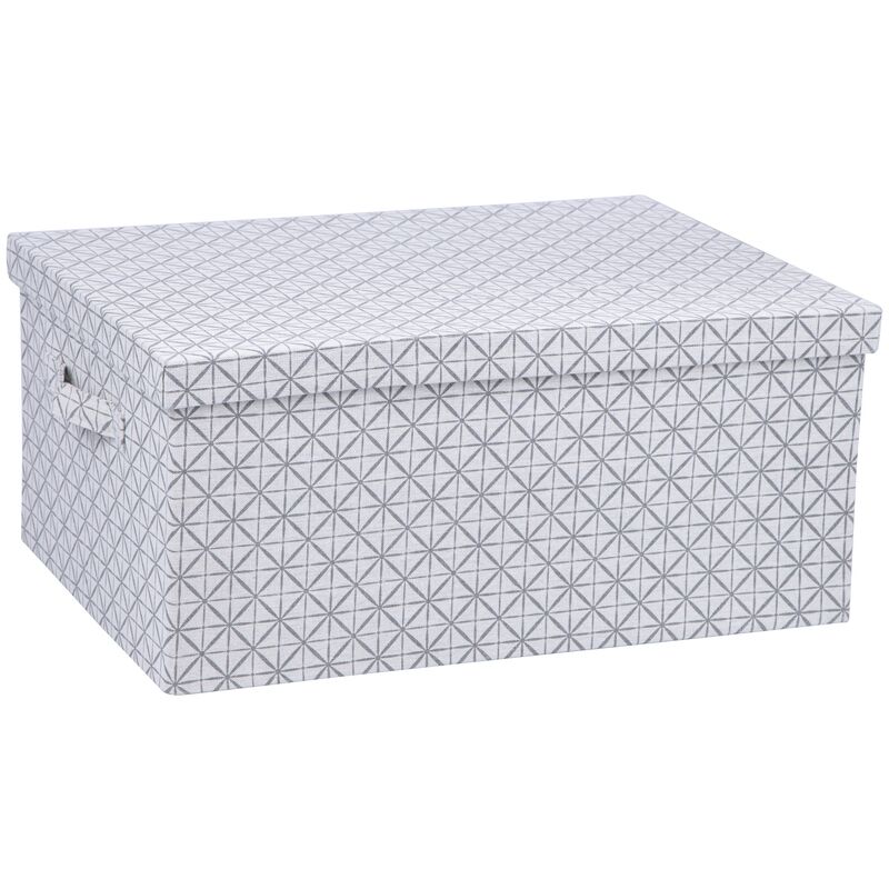 Scatola Pieghevole Con Coperchio Flake L 48X35X21 Cm Grigio-Bianco Caratteristiche: Materiale= cotone-poliestere-viscosa-cartone Colore= grigio-bianco Misure: Lunghezza= 35 cm Profondità= 48 cm Altezza= 21 cm