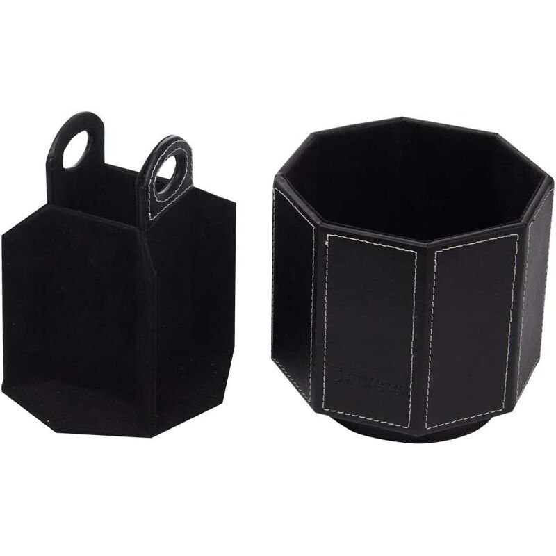 Il supporto per telecomando, il modo perfetto per tenere traccia dei telecomandi multimediali, nonché di occhiali, telefono, persino accessori da scrivania, ecc. Il nostro contenitore per telecomando ti offre più posizioni per aiutarti a mantenere cose organizzate. Non dovrai più cercare sotto i cuscini del divano il telecomando della TV, delle console di gioco o del decoder via cavo! Il supporto per telecomando è progettato con una base girevole che consente di spostare l'intero supporto del telecomando e accedere facilmente al dispositivo di controllo remoto desiderato. Il nostro supporto per telecomando è rivestito in un'elegante e resistente similpelle nera con cuciture delicate per mantenere l'arredamento della tua casa elegante e chic mentre funge da organizer per la casa. Utilizzalo come supporto per telecomando da tavolino o per organizzare la scrivania. Si adatta ovunque senza occupare troppo spazio.