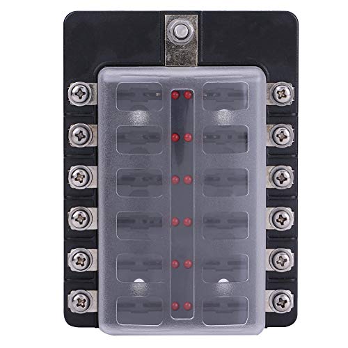Scatola portafusibili a lama di circuito a 12 vie Kit supporto blocco ATC ATO standard, lame fusibili e porta scatola fusibili lama, terminali, adesivo e viti