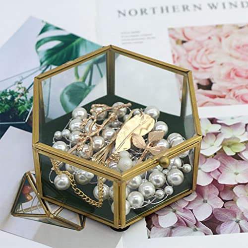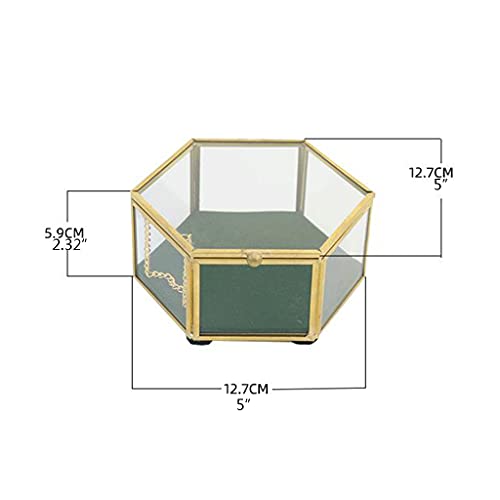 Scatola portagioie vintage Ydh, scatola in vetro trasparente per anelli, bracciali, orecchini, collane, regalo per donna ragazza, scatola decorativa in vetro esagonale