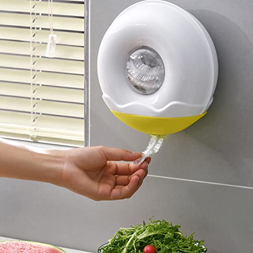 Scatola Portaoggetti per Pellicola con 100 Sacchetti Salvafreschezza, Scatola portaoggetti per Alimenti a Parete Dispenser per Sacchetti Salvafreschezza, Grande Capacità (Giallo)