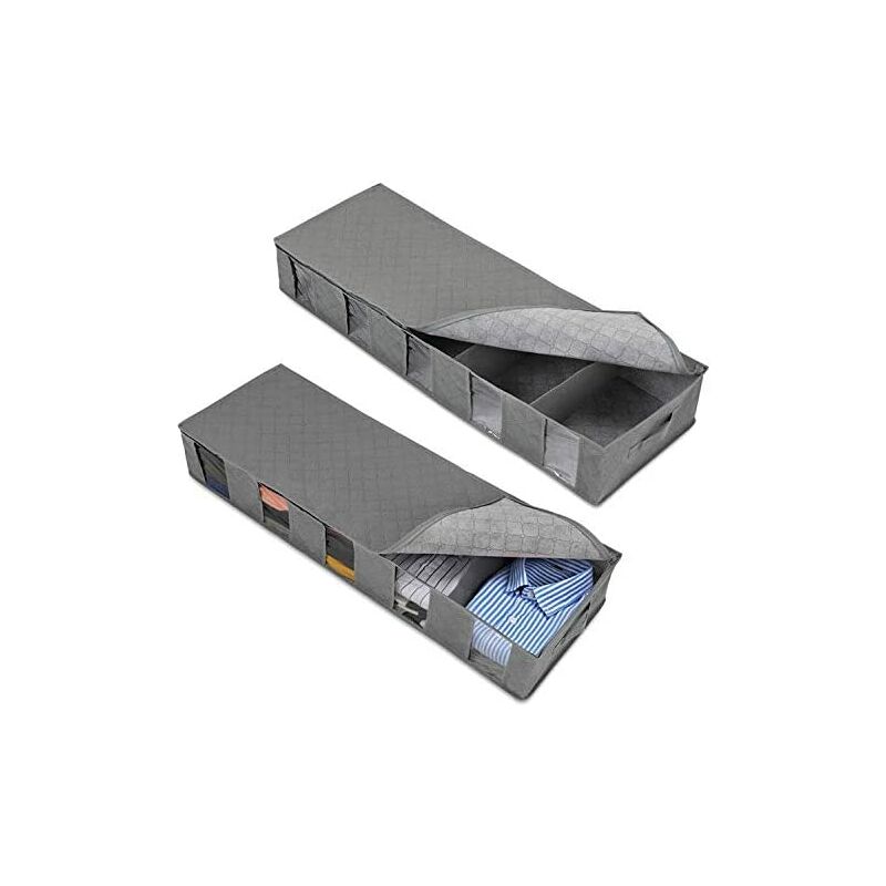 DUREVOLE: le fodere sono realizzate in tessuto rigido, resistente e impermeabile. Con il sacchetto sottovuoto e il coperchio inclusi, ciò consente una doppia chiusura che protegge gli indumenti dalla polvere o dalla crescita di batteri. FACILE CONSERVAZIONE: l'ampia apertura trasparente sul coperchio consente di identificare facilmente il contenuto senza doverlo per aprire il coperchio e garantisce una conservazione senza polvere. Inoltre, le fodere sono facili da spostare grazie alle maniglie sui lati. VERSATILE: È pieghevole per non occupare spazio quando non viene utilizzata. Sono perfetti per residenze studentesche, attici, cantine e camere da letto. Protezione e apertura: protegge gli indumenti dagli effetti dannosi di luce e polvere grazie al suo design in fibra di polipropilene non tessuta, Ampia cerniera a tutta lunghezza Apertura per un facile utilizzo OPZIONE DI CONSERVAZIONE MULTIUSO: questa custodia sotto il letto si adatta perfettamente sotto il letto e può essere